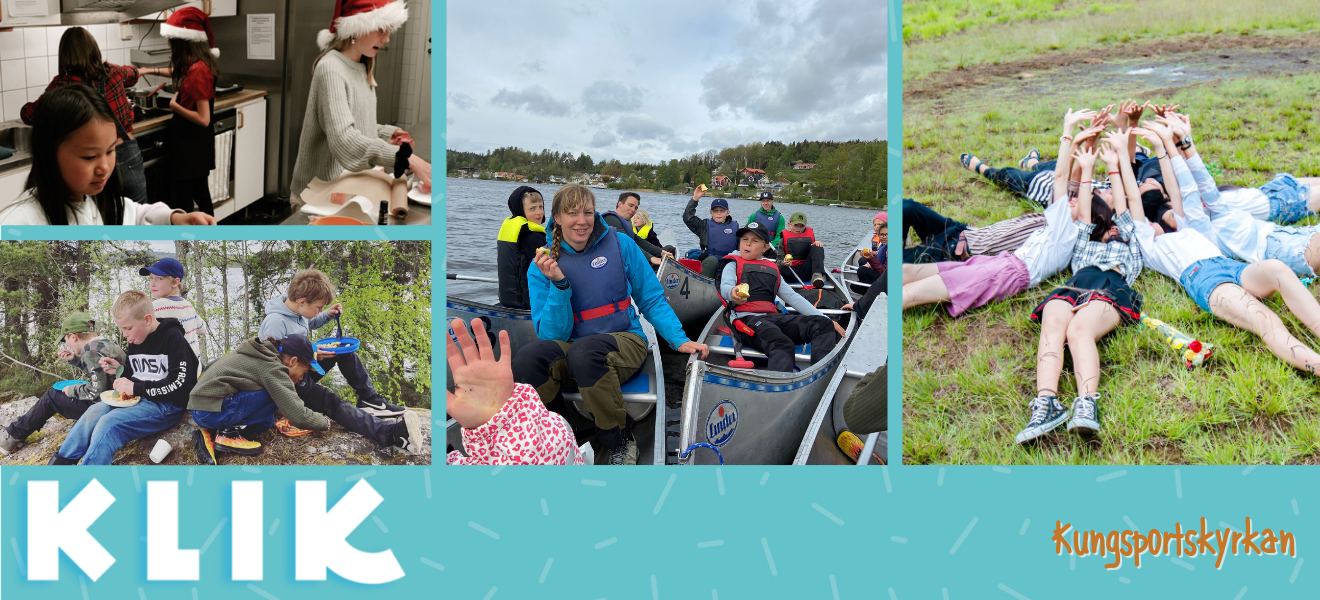 Klik riktar sig till barn som går i 4:an-6:an och tanken med träffarna är att barnen ska få umgås och lära känna varandra. Vi leker, tävlar och fikar ihop och avslutar varje samling med en andakt. Bjud gärna med en kompis!