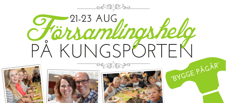 21-23 augusti är det dags för årets roligaste helg - församlingshelg på Kungsporten! En helg med roliga aktiviteter, undervisning, musik, gemenskap, god mat och mycket skratt. En helg där vi får komma närmare både Gud och varandra.