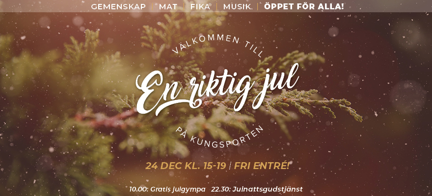 Välkommen att fira "En riktig julafton" på Kungsporten! Firandet äger rum mellan 15.00-19.00 och du kan komma och gå som du vill. Under dagen bjuder vi på mat, fika, musik och härlig gemenskap.