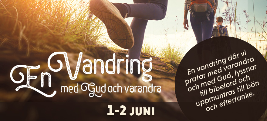 Välkommen med på "En vandring med Gud och varandra" den 1-2 juni. En vandring där vi pratar med varandra och med Gud, lyssnar till bibelord och uppmuntras till bön och eftertanke.
