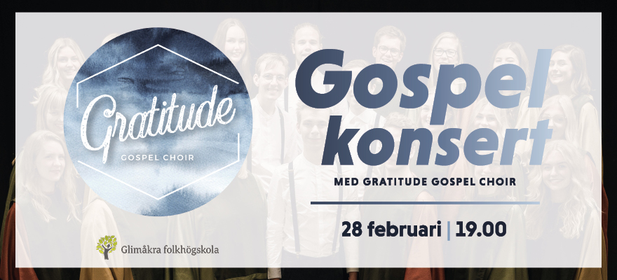 Välkommen på gospelkonsert med Gratitude Gospel Choir från Glimåkra Folkhögskolas gospellinje!