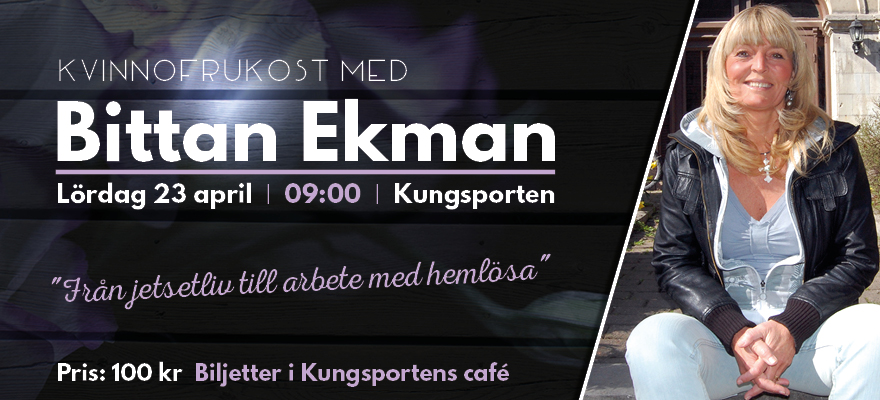 Välkomna till kvinnofrukost och föreläsningen ”Från jetsetliv till arbete med hemlösa” på Kungsporten, lördag 23 april kl 09.00.