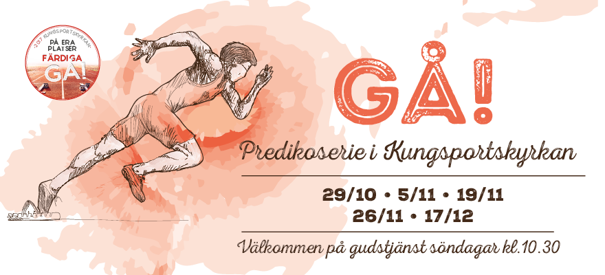 GÅ! är namnet på årets sista predikoserie i Kungsportskyrkan. Serien sträcker sig över fem söndagar i höst.
