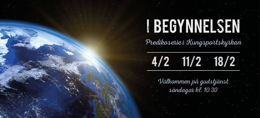 På söndag den 4 februari inleder vi en ny predikoserie som heter "I begynnelsen". Under tre söndagar fokuserar vi på de första kapitlena i bibeln.