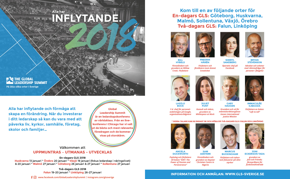 13 januari 2018 arrangerar vi The Global Leadership Summit på Kungsporten! Vi tror att vi kan lova dig en stor konferensupplevelse med undervisning av ledare av världsklass och tid för bearbetning och reflektion i team. Kom och bli utmanad, uppmuntrad och utrustad!