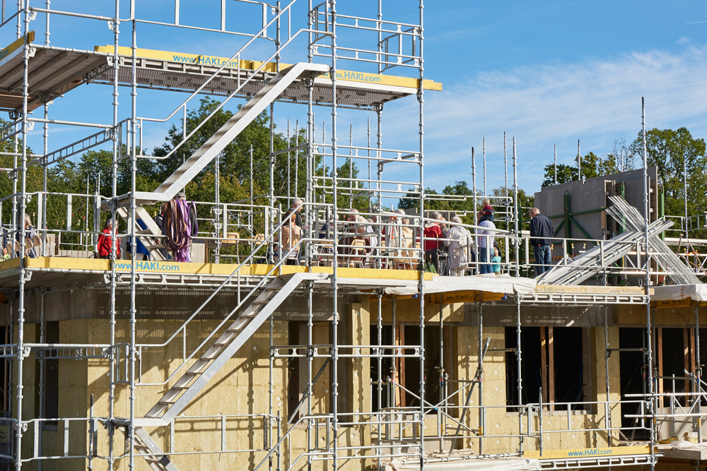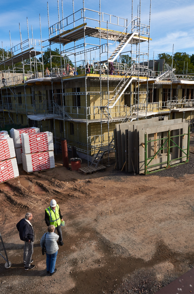 Gärahovs Bygg AB och Kungsportens Trygghetsboende hade i torsdags (10 sep) en uppskattad visning av byggnationen. På plan tre, av blivande sju plan, samlades de som i juni 2016 ska flytta in i fastigheten till mingel och information om byggnationen.