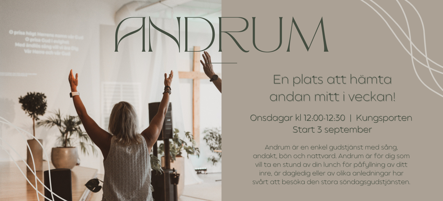 Andrum är för dig som vill ta en stund av din lunch för påfyllning av ditt inre, är dagledig eller av olika anledningar har svårt att besöka den stora söndagsgudstjänsten.
