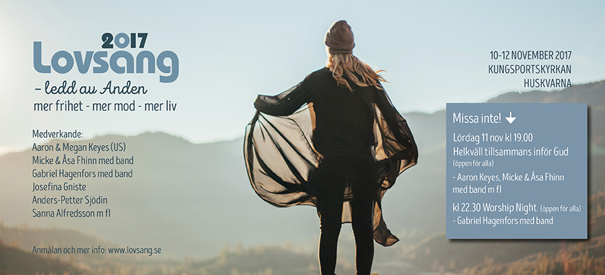 10-12 november är det dags för Lovsång 2017 i Kungsportskyrkan! En helg fylld av inspiration och utrustning för sångare, musiker, lovsångsledare, dansare, pastorer, präster, församlingsledare och dig som vill fördjupa förståelsen av tillbedjan.