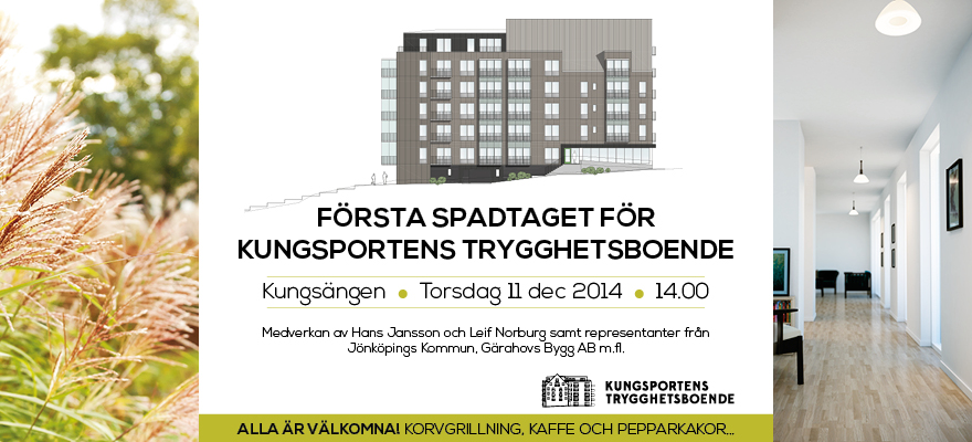 Alla är välkomna till första spadtaget för Kungsportens Trygghetsboende på Kungsängen 11 december 2014 kl. 14.00.