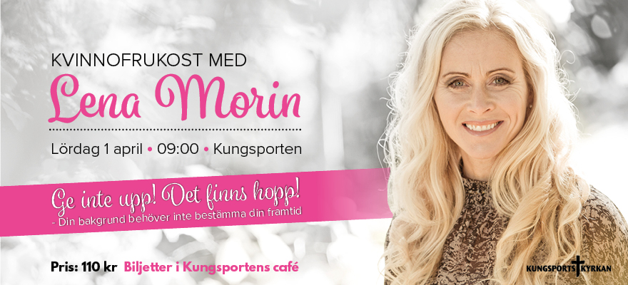 Varmt välkommen på kvinnofrukost med Lena Morin, lördag 1 april kl 9.00 på Kungsporten.
