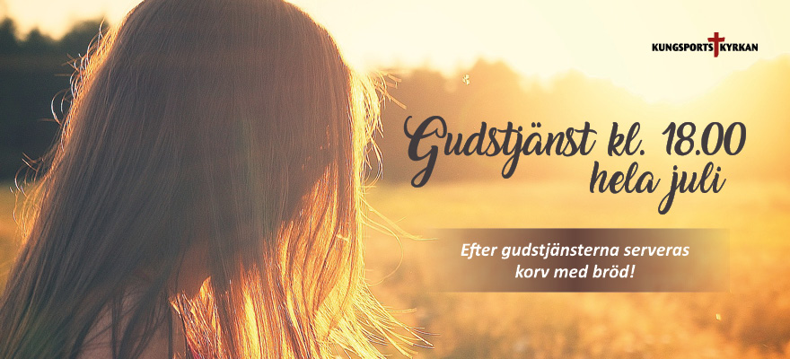 Under juli månad firar vi gudstjänst kl. 18.00 på Kungsporten. Predikan, lovsång, förbön och mycket mer. Gemenskap och servering av korv med bröd efter gudstjänsten, sommarland för barnen.