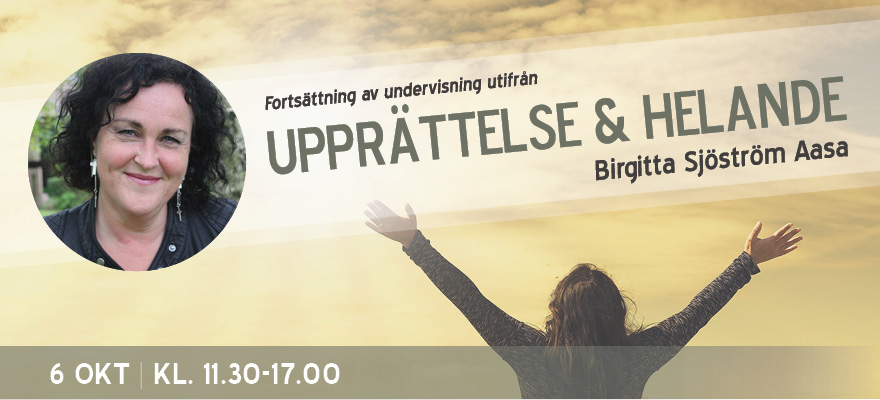 Välkommen på en dag med fortsatt undervisning av Birgitta Sjöström Aasa utifrån temat "Upprättelse och Helande" lördagen den 6 oktober kl. 11.30-17.00.